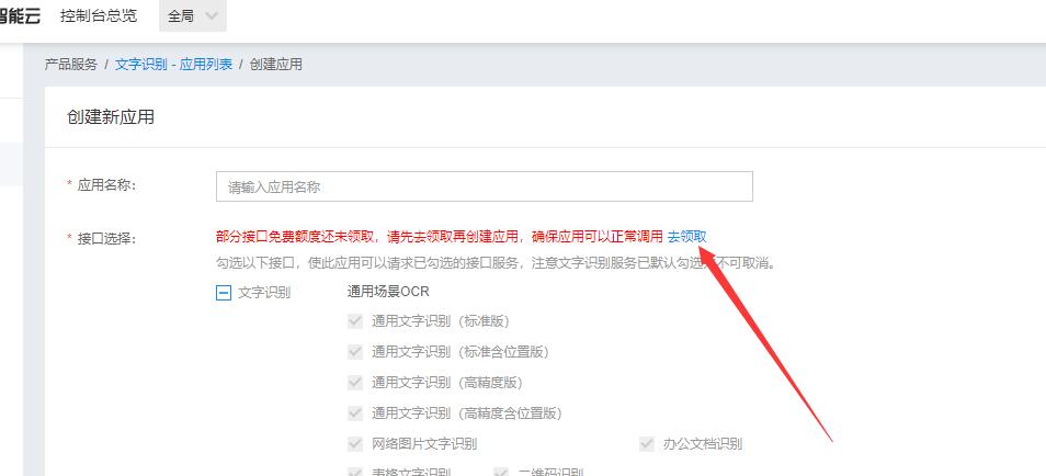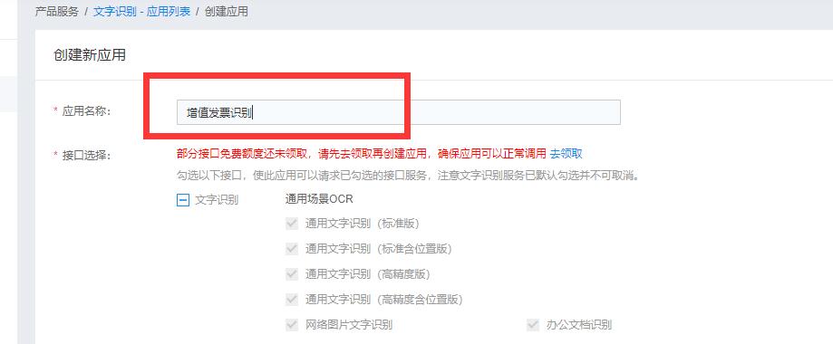 3.創(chuàng)建【文字識(shí)別】下的應(yīng)用