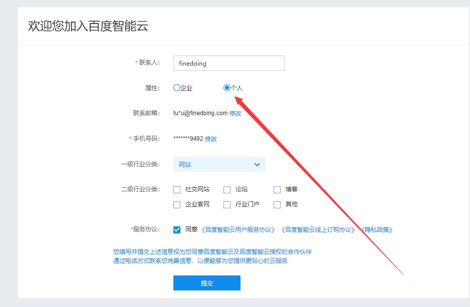 1.登錄 百度AI開(kāi)放平臺(tái) ai.baidu.com,注冊(cè)并登錄后,在歡迎頁(yè)面中選擇“個(gè)人”即可