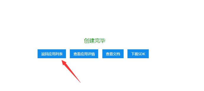 7.創(chuàng)建完后點(diǎn) “返回應(yīng)用列表”,即可拿到我們需要的 API Key 及 Screte Key