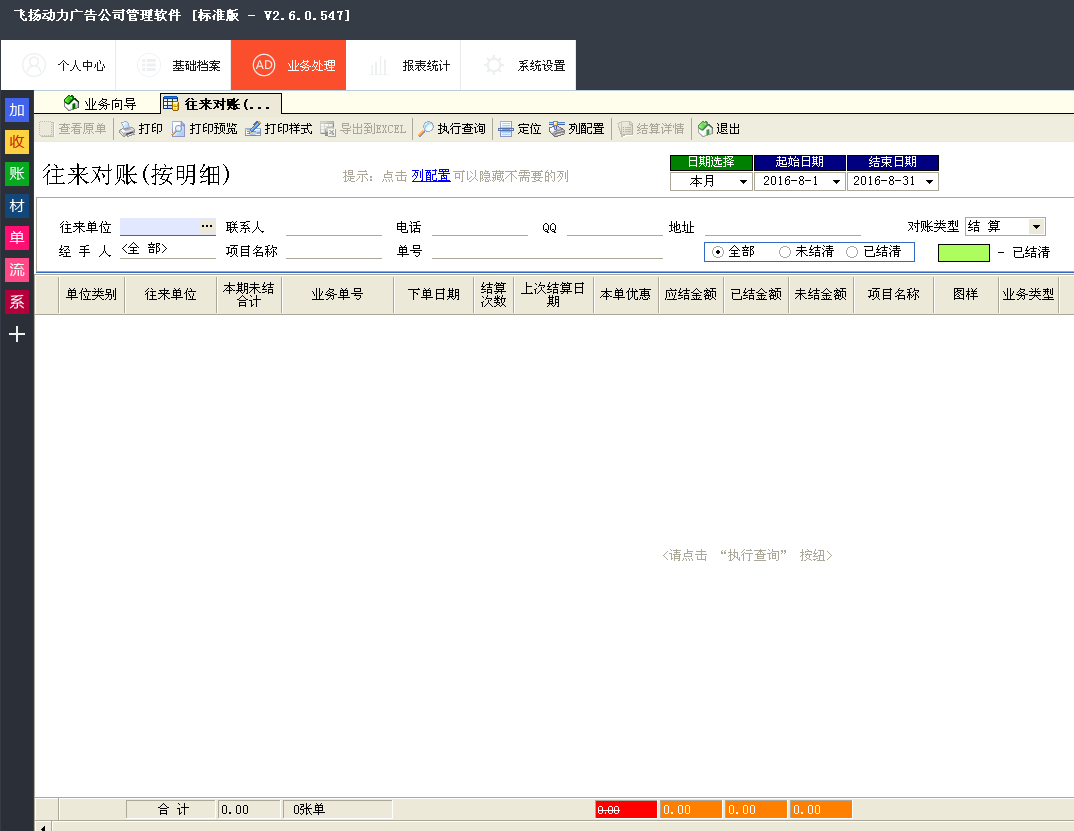 在以前開手工單據的時候,業務對賬是比較麻煩的,所以,飛揚動力廣告公司管理軟件為了解決廣告公司的困擾