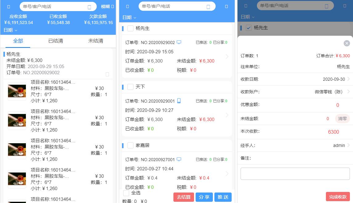 自動生成對賬、收款單據,一鍵查詢、分享,方便管理人員隨時了解公司的銷售狀況。
