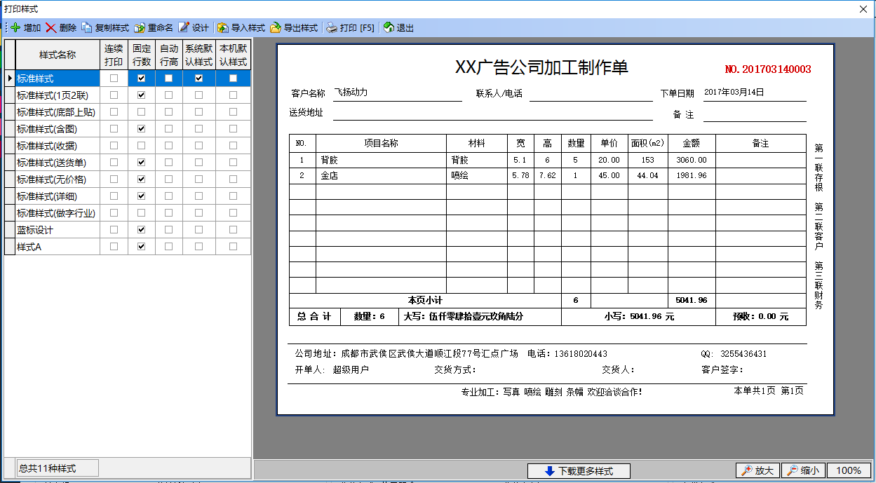1.可以在加工制作單中直接進(jìn)行打印,送貨,對(duì)賬收款。(注:打印樣式可以選擇不同的樣式進(jìn)行打印)